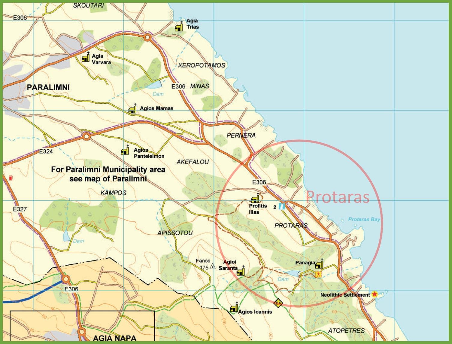 Street map of protaras Cyprus. Map of Cyprus showing protaras (Southern Europe - Europe) to print. Map of Cyprus showing protaras (Southern Europe - Europe) to download.
